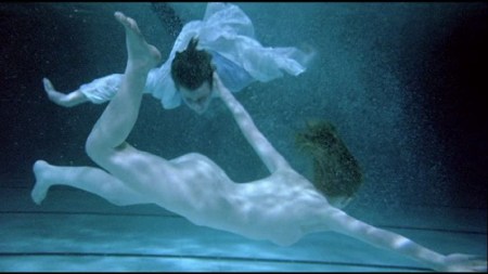 En plus de l’ambiance moite que Skolimowski parvient à créer, il va décupler le caractère onirique et fantasmagorique des bains publics par un travail remarquable sur les couleurs. Le rouge et le vert dominent, par petites touches (des voyants, des coussins) ou par des pans entiers, mais également par les couleurs habillant ses personnages, le jaune étincelant de l’imper de Susan, sa chevelure rousse non moins resplendissante se voyant par l’association des yeux d’un bleu éblouissant de Mike. Et à l’image de son héroïne, Skolimowski va souffler le chaud et le froid, jouer avec le spectateur au chat et à la souris comme Susan s’amuse avec Mike (elle se laisse peloter puis l’instant d’après lui adresse une gifle. Elle l’embrasse fiévreusement pour le faire accuser puis emmener par les flics juste après). Nous voilà ainsi baladé d’une cabine à une autre, puis nous accompagnons Mike dans sa poursuite de sa dulcinée d’abord dans un cinéma diffusant un programme érotique à valeur éducative, puis dans une boîte de nuit hyper select, pour enfin atterrir sur le trottoir devant les devantures de spectacles de strip-tease ou des portes menant à des prostitués. Les pérégrinations de Mike à l’extérieur, dans l’univers interlope dont Susan semble être la reine, accroissent d’ailleurs son désir, son chamboulement sentimental, sa désorientation affective. L’objet de son désir se confond désormais avec son image. Et Mike plongera profondément dans cette indifférenciation. Comme le montre la conclusion superbe de toute cette séquence, où Mike se jette dans l’eau obscure de la piscine des bains, enlaçant l’effigie de sa chère Susan. A noter, que toute cette partie (près de quinze minutes) où Mike visite le monde de Susan est rythmée par la musique enivrante du groupe Can, morceau « Mother Sky », accentuant notre propre déboussolement par une dilatation temporelle et sensorielle imperceptibles. A propos de musique, n’oublions pas celle de Cat Stevens dont le « But i might die tonight » ouvre le film, insinuant un sentiment mélancolique et tragique qui ne quittera pas une seconde les images de ce film envoutant.
