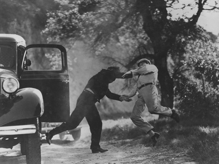 Tim Tyler’s Luck (1937) de Ford Beebe (un autre grand du genre) et Wyndham Gittens est tiré d’une bande dessinée de Lyman Young. On retrouve là tous les ingrédients qui ont fait les beaux jours du serial : la jungle, où notre jeune héros d’une quinzaine d’années (Frankie Thomas), baptisé en France, allez savoir pourquoi, Richard le Téméraire, est à la recherche de son scientifique de père ; la jolie fille en casque colonial (Frances Robinson) ; le sinistre méchant, au nom imagé de Spider Webb (Norman Willis) et le cimetière des éléphants, convoitise de ce dernier. Ajoutons à cela les habituels crocodiles, lions, une gentille panthère noire et des gorilles incroyablement véridiques, joués par des figurants sous défroques simiesques, qui balancent de gros cailloux ou portent les jeunes héroïnes.