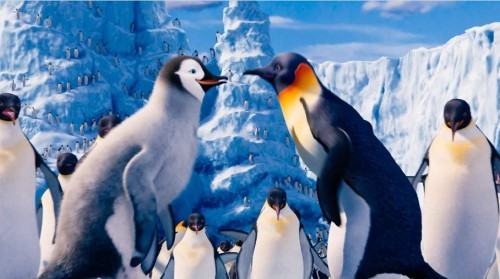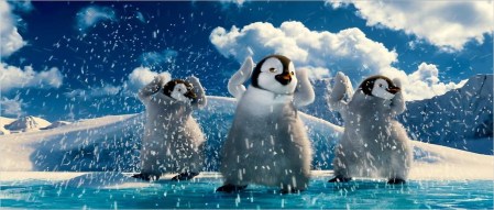 L’objectif poursuivit par le cinéaste ne sera pas seulement de conter leur libération physique. L’ambition du propos n’est d’ailleurs pas incompatible avec le statut d’œuvre destinée aux enfants dans lequel beaucoup sont prêts à enfermer ce merveilleux film d’animation. Les personnages sont drôles et très bien caractérisés, les péripéties énergiques, le déroulement du récit assez linéaire, les numéros chantés et dansés bénéficient de chorégraphies superbes, autrement dit, le plaisir purement récréatif est total. Pourtant, tout ce qui se déroule à l’écran est sous-tendu par une complexité thématique ahurissante que la mise en scène de Miller rend d’une limpidité désarmante. Pris dans ce maelström d’émotions et de pulsations en couleurs (une tournure quelque peu absconse qui prend tout son sens à la vision du film), le spectateur n’en appréhende pas forcément la finalité jusqu’à ce qu’elle se révèle dans une éclairante et éclatante sonorité finale qui abat aussi bien la dernière barrière physique entravant les manchots, que les derniers verrous d’une compréhension et implication du spectateur qui va bien au-delà des mots.