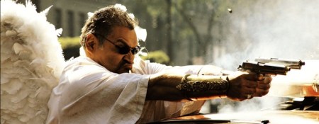 De magouille en manipulation, en passant par des interventions musclées et explosives, Chucho va peu à peu se confondre avec son personnage démoniaque, la réalisation appuyant d’ailleurs cette transformation par des cadrages appropriés, l’immiscion de touches fantastiques de plus en plus marquées et marquantes pour aboutir à une escalade anthologique et dantesque où l’affrontement des forces antagonistes prendra une tournure épique et rigolarde. Surtout, Portes se montre aussi iconoclaste que De La Iglesia même s’il lui manque la rage donnant cette saveur particulière aux formidables films de l’ibérique. Ceci dit, Pastorela se montre suffisamment généreux dans ses effets, sa galerie de personnages truculents et ses retournements d’icônes sacrées pour emporter l’adhésion.