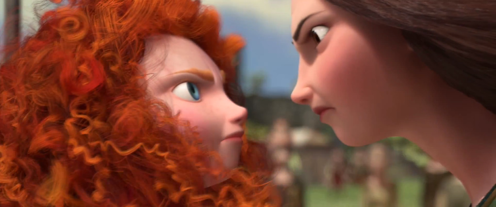 Mérida, fille unique du roi Fergus et de la reine Elinor, est une belle et farouche princesse préférant, au désespoir de sa mère, apprendre à manier les armes plutôt que maîtriser les obligations protocolaires que lui confèrent son rang. Le conflit larvé entre ces deux jolies et fortes têtes va prendre une tournure dramatique (aux accents shakespeariens) lorsqu’un tournoi réunissant les trois autres clans du royaume va être organisé afin de déterminer lequel des représentants pourra prétendre à la main de la renfrognée rouquine. Cette dernière va alors prendre en main son destin en saisissant son arc et décochant trois tirs d’une précision quasi surnaturelle, ridiculisant les autres archers et réduisant à néant leurs espoirs. Une séquence magistrale puisqu’en même temps qu’elle définit encore plus précisément les caractères bien trempés de Mérida et sa mère, elle souligne les enjeux au cœur desquels la résolution de leur antagonisme sera décisive. En effet, il en va de l’union des clans séparés et de la famille de Mérida que cette-ci se résolve à prendre mari. Autrement dit, comment concilier nécessité politique et désir personnel.
