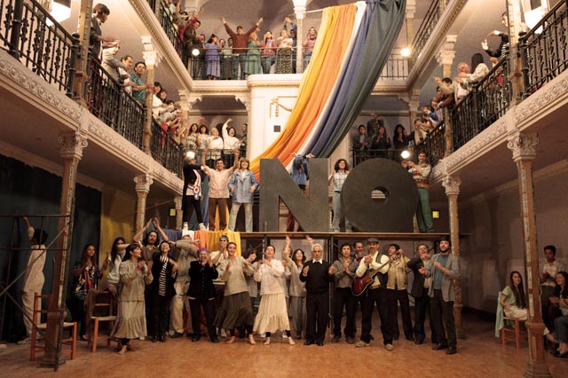 C’est la troisième fois que le cinéaste chilien Pablo Larraín met en perspective, dans son cinéma, les crimes et les dérives de la dictature de Pinochet. Après Tony Manero en 2008 (en référence au héros de Saturday Night Fever, interprété par John Travolta, que son personnage principal admire entre tous) et Santiago 73, Post Mortem en 2010, c’est cette fois-ci la fin du régime des généraux que nous relate Larraín dans ce cri du cœur, lancé avec la fougue des jeunes premiers, ce No sonore et enthousiasmant qui résonne longtemps après à nos oreilles, à l’instar du slogan phare des spots publicitaires de l’opposition « Chile, la alegría ya viene ! ». Pour ce jeune réalisateur, né après le coup d’État de Pinochet (il est venu au monde en 1976 à Santiago du Chili), No signe peut-être la fin d’un long règlement de comptes avec sa propre histoire, mais une fin de rêve, une conclusion ouvrant sur tous les espoirs, puisqu’en deux heures ce long-métrage nous fait vivre les derniers jours de la légitimité de l’armée chilienne au pouvoir.