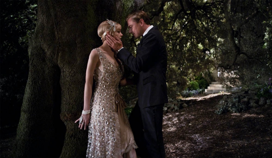 Il suffit, pour se convaincre que Luhrmann a fait de Gatsby une ode à la personnalité de Leonardo Di Caprio, de voir ou revoir la première apparition du mystérieux protagoniste au paroxysme d’une dispendieuse soirée dans sa demeure. Invité aux festivités, Nick cherche à apercevoir l’objet de tous les désirs, ce Gatsby qu’il imagine successivement vieillard abruti, richissime paranoïaque ou même corps inexistant, couverture façon Magicien d’Oz destinée à détourner l’attention des parasites. Enfin, quand Gatsby apparaît, c’est une caméra en contrechamp qui le capte et un feu d’artifice grandiose illumine le ciel derrière son visage rayonnant. Et non, ce n’est pas Gatsby que voilà. Et non, ce n’est plus Fitzgerald qu’on met en scène. C’est Leonardo, homme et acteur, réalité et fiction, qui surgit là devant nos yeux. C’est un monde de cinéma qui nous est donné à voir, où tout, dans la demeure de Gatsby, n’est que décor, apparat, ornementation – comme les tombes des rois antiques, et tombe elle deviendra bel et bien pour son occupant. Impossible, d’ailleurs, de ne pas penser, à travers le comportement obsessionnel de Gatsby à l’égard de Daisy, non pas seulement à la passion de Fitzgerald pour Zelda, mais surtout à la psychologie problématique d’un autre personnage joué par Di Caprio, Howard Hughes, chez Scorsese (Aviator), lui aussi constamment menacé par une chute dans la folie.