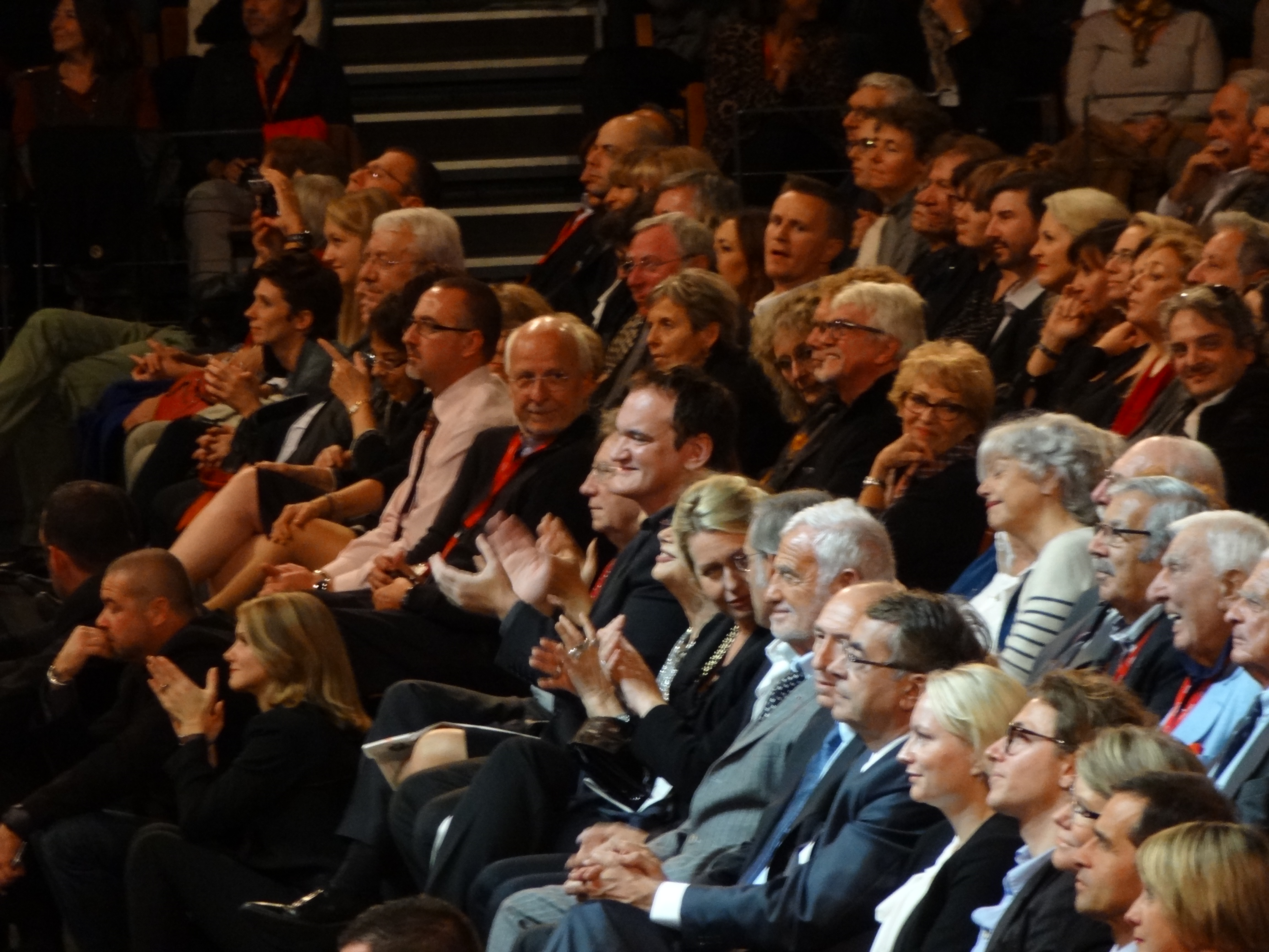 Ému comme le reste de l’assistance, Tarantino est venu se planter devant Bébel, tout aussi intimidé qu’un élève en cinéma, et lui a récité un compliment joliment tourné qu’il avait rédigé en cours de vol. La salle était debout, les jeunes hurlaient le prénom de Quentin, les larmes perlaient à plusieurs paupières (dont celles de Jean-Paul).