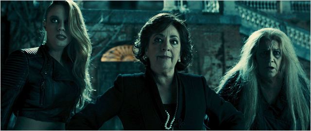 Quant aux héros des Sorcières…, leur désespoir est tel qu’ils sont déjà passés de l’autre côté de la barrière légale. Quatre hommes en quête d’argent – pour vivre, simplement, ou pour payer cette fichue pension alimentaire réclamée par une ex-femme colérique et vénale – se croisent dans un dépôt or de la place de la Puerta del Sol à Madrid et décident de braquer la boutique aux tiroirs débordants d’alliances déposées en gage. Déguisés en figures symboliques, de celles incarnées sur les grandes places urbaines par des pseudo-comédiens en quête de quelques sous – Bob l’Éponge et Minnie en prosélytes de la mondialisation américano-centrée, un soldat vert chantre du militarisme de bon aloi, et enfin un Jésus argenté embarrassé de sa croix – les compères se lancent dans un braquage en pleine journée et au milieu de la population. Seuls deux s’en tirent, José et Antonio, prenant en otage un chauffeur de taxi, Manuel, et le malheureux passager dudit véhicule, le tout en compagnie de Sergio, le jeune fils de José. La joyeuse bande vise la frontière française et, au terme du voyage, Disneyland Paris – autre réminiscence du rêve capitaliste, aussi abstrait et lointain durant tout le film que l’est la demeure du maître dans Le Château de Kafka pour le personnage de K. Sauf qu’en lieu et place de Disneyland, ils tombent, avant la frontière, sur une absurde resucée du Train Fantôme : un village situé quelque part entre Season of the Witch et Les Sorcières d’Eastwick. Avec Terele Pavez, Carmen Maura et Carolina Bang en grand-mère, maman et fille d’une même famille de magiciennes old school – à ceci près qu’Eva, sorcière-top model, utilise son fameux balai d’une façon plus érotique que magique.