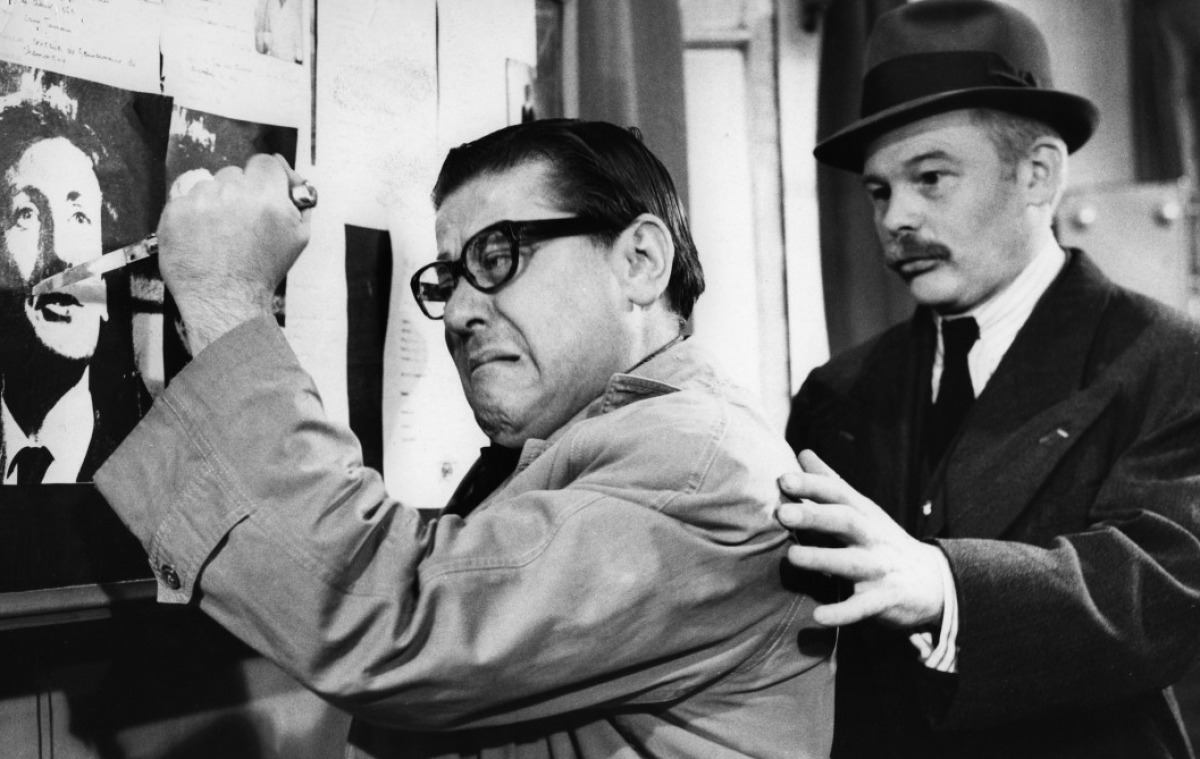 Le commissaire (RJ Chauffard) compatit devant la douleur de l’inspecteur Lelouuuup (Francis Blanche) qui massacre l’image de Claude Rich, un des Compagnons de la marguerite