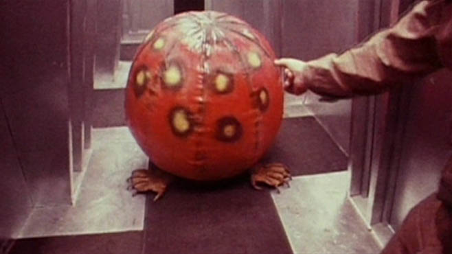 Autre ajout, l’Intermède drolatique, assez incongru dans le déroulement de l’histoire, où Pinback (Dan O’ Bannon) donne à manger puis poursuit dans le vaisseau l’un des extra-terrestres récupérés au cours de leur périple. A la limite du ridicule avec ce ballon de plage aux pieds griffus en guise de créature, cette partie est sauvée par l’orientation slapstick donnée à son développement par O’ Bannon et bien sûr par la mise en scène de Carpenter qui montre déjà une certaine aptitude à filmer des espaces confinés (coursives du vaisseau et ascenseur) pour instaurer de la tension. D’ailleurs, l’espace étriqué du Dark Star formera le lieu d’action principal du métrage, annonçant l’appétence de Carpenter pour les huis-clos (Assaut, Halloween, The Thing étant évidemment d’un tout autre niveau). On retrouve également son intérêt pour des personnages de condition modeste, des outcast un peu rebelles, les astronautes du Dark Star étant présentés comme des routiers, des sortes de John Nada de l’espace.