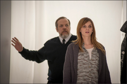Il y a dans cet incipit quelque chose de brutal et de réflexif à la fois. Surtout dans la façon dont est filmée la scène de l’escalier, claire, rapide mais lisible, découpée sans tricherie ni volonté d’excès spectaculaire. Dans ce moment où le souffle du spectateur reste très brièvement suspendu à l’inquiétude du bris (effet réussi), instant fatidique dont va finalement dépendre tout le reste du métrage, se meut le parti pris du film : l’illustration de la pesanteur des corps. Ce n’est d’ailleurs pas un hasard si le héros ne vit que de nuit – mais vivre ainsi, est-ce vraiment vivre ? – et passe son temps à se tenir debout quand les autres sont allongés – et inversement. À travers ces quelques plans dans l’escalier où l’on ressent vraiment la gravité (au sens plein et symbolique) de la situation, Norman le veilleur de nuit semble souffler à l’oreille de Nathalie la voleuse : « si je tombe, tu tombes avec moi ». Une réplique non-dite qui influe sur tout le film, entièrement voué à l’idée de chute – sans qu’aucune ascension, même en préambule, ne vienne la contrebalancer. Il s’agit là d’une belle intention à vrai dire, qui malheureusement ne permet pas de capter pleinement l’attention du spectateur. Car même s’il nous projette rapidement dans le feu de l’action via sa première scène de confrontation – dont le réalisme, d’ailleurs, laisse un peu à désirer (Nathalie enfonce trop facilement une grille censée résister aux assauts des malfrats) – L’ange gardien préfère cultiver la contemplation, voire la lente désagrégation des relations humaines et du moral de ses personnages principaux.