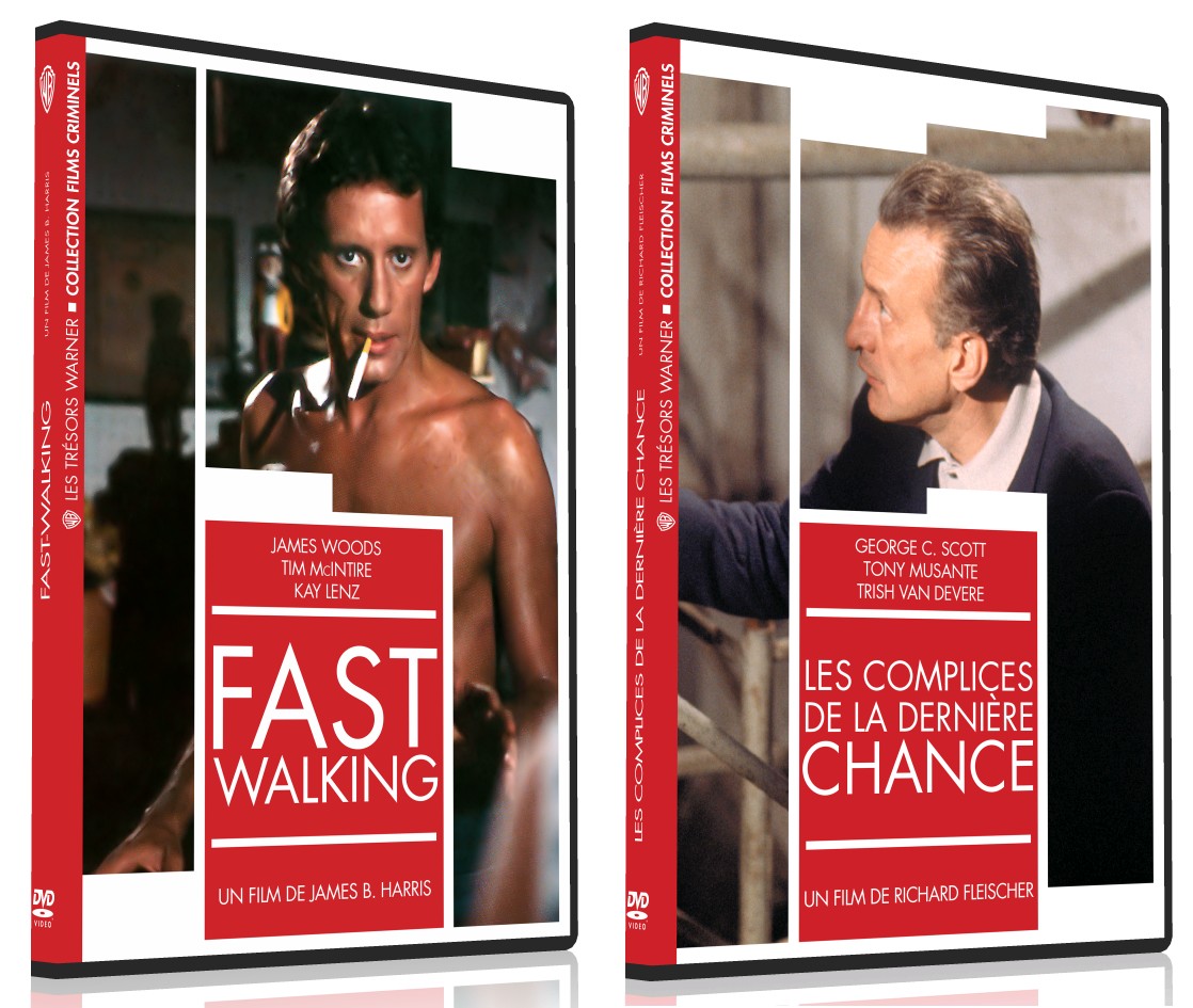 Fast-Walking est disponible chez Warner, dans la collection Films criminels, qui s’est faite désirer, mais bon. Hormis le joli minois de Kay Lenz, quelques bonnes trognes viennent faire des passes d’armes avec la lame James Woods, notamment Tim McIntire, M. Emmet Walsh et Timothy Carey qui, presque dix ans auparavant, se faisait buter par Robert Duvall dans Echec à l’organisation.