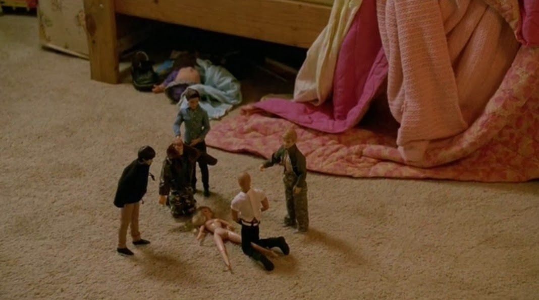 Dès le premier épisode, lors d’une a priori innocente scène de la vie familiale de Marty, ce dernier va jusqu’à l achambre de ses filles pour leur dire que l’heure du diner a sonné. Après qu’elles aient quitté la chambre, il jette un coup d’oeil et voit une étrange scène reproduite avec des figurines : une poupée nue allongée sur le dos, un personnage masculin à califourchon dans une posture explicite et le « couple » entouré de quatre autres figurines masculines. Il s’en dégage une impression dérangeante, d’autant plus que cela se matérialise au sein d’une cellule familiale équilibrée. Hart n’en parlera pas à Maggie sa femme, comme s’il n’y avait prêté qu’une attention fugace et jugé ce spectacle inoffensif bien que bizarre pour émaner d’une gamine. Cette image s’imprègnera d’autant plus dans la mémoire que par la suite, le récit révèlera les horreurs se déroulant au sein de certaines école sdu programme éducatif du révérend Tutlle. Ce ne sera jamais abordé, mais on a tôt fait de déduire qu’Audrey, en 1995, avait l’âge pour avoir fréquenté un de ces établissements noyautant la région avant qu’ils ne ferment quelques années plus tôt. Dans l’épisode 3, leur routine familiale est perturbée par les dessins obscènes qu’elle a produit sur tout un cahier, entraînant explications compréhensives, pleurs et câlin rassurant des parents à leur fille. Seule Maggie semble véritablement s’inquiéter car pour Marty c’est une affaire réglée. Puis l’on aborde 2002, la période charnière pour Rust et Marty car marquera leur séparation, leur duo étant de plus en plus instable malgré la résolution de l’affaire Ledoux il y a sept ans. Parmi les évènements perturbant pour Marty, celui impliquant sa fille Audrey désormais âgée de seize ans qui a été retrouvée dans une voiture en compagnie de deux jeunes hommes de dix-neuf ans avec lesquels elle s’amusait de manière délurée et débridée. Après une explication avec elle, Marty se charge de régler le problème en corrigeant les deux garçons retenus au poste. Un aveuglement total aux actions de sa fille, ne les questionnant même pas à l’aune de tout ce qu’il a pu voir par le passé ou apprendre dans son enquête avec Rust.