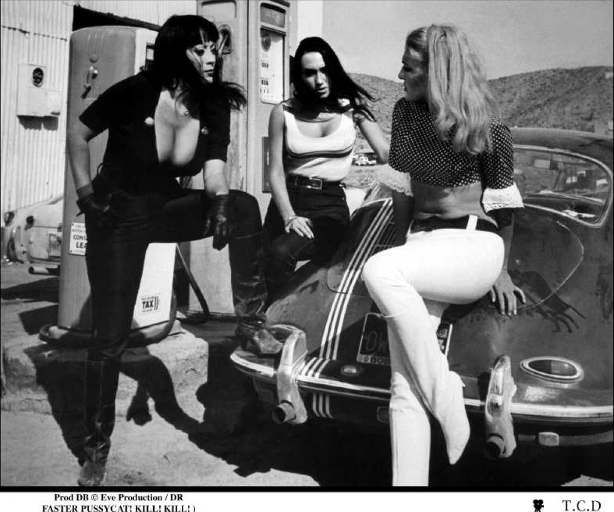 Le grand ancêtre de tous ces films reste Faster Pussycat ! Kill ! Kill ! (1965) et il est temps de donner un coup de chapeau à Russ Meyer et à ses trois formidables interprètes : Tura Satana, Haji et Lori Williams. Elles sont belles et cruelles et font connaître à qui les regarde de beaux Noëls mammaires. Elles tiennent tête aux hommes, les tabassent et rient de leur déconfiture. L’esprit est camp, c’est-à-dire kitsch, de mauvais goût, macho parce que les filles ont de gros nichons et anti-macho parce qu’elles ne sont pas que des objets sexuels. Elles cognent et ricanent et se moquent des mecs dans ce qu’ils ont de plus viril.