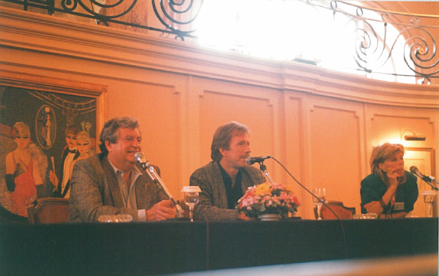Séquence frissons : je me souviens d’avoir vu ainsi Chuck Norris. Michael Dudikoff. Dolph Lundgren. Joan Collins et Roger Moore et Michael Winner ensemble, pour un film qui ne verra jamais le jour avec ce casting. Peut-être s’agissait-il de Bullseye !, qui réunit Roger Moore devant et Michael Winner derrière la caméra. Dans ce cas-là, Joan Collins a du être remplacée par Sally Kirkland. Souvenir également d’avoir raté (et je m’en veux encore) Maruschka Detmers. Elle venait sans doute parler de Hanna’s War (1988), un film réalisé par Menahem.