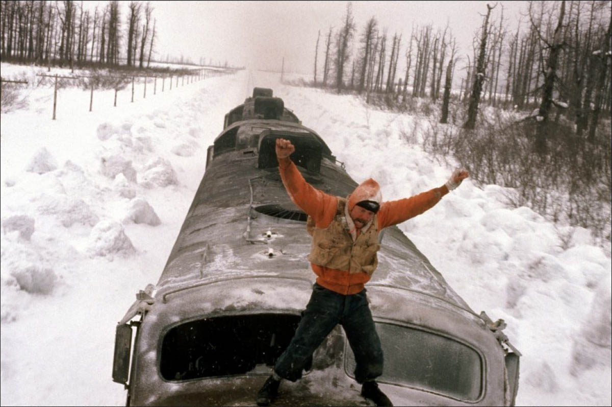 Tout réflexif qu’il soit sur ce qu’on serait tenté d’appeler « la condition inhumaine » (brutalité du système carcéral, entre autres misères du monde) théâtralisée dans un environnement soumis à l’âprêté du climat hivernal, le film ne manque pas du muscle, de cette adrénaline et même, de cette sauvagerie décomplexée que le spectateur lambda est en droit d’attendre de la firme Cannon Group. Les scènes d’émeutes du début, représentatives d’un genre – le film de prison – alors florissant, accompagnées d’images pugilistiques (Roberts joue un boxeur embastillé) augurent d’une castagne ludique et véritablement cinégénique, mais surtout réaliste à faire froid dans le dos. Car loin des inepties emplies d’américanisme primaire avec Chuck Norris ou Stallone en mode Cobra, Runaway Train s’enorgueillit de la vision sèche, dépouillée, glaciale pourrait-on dire sans craindre un mauvais jeu de mot, d’un réalisateur – alors passé à l’Ouest et à Hollywood depuis quelques années – sachant aussi bien filmer les sentiments (Maria’s Lovers) que l’action sans concession. Plus tard, l’homme se montrera plus ostentatoire, moins profond aussi et probablement perverti par la tendance, avec un Tango & Cash énergique et « mâle », mais tout juste divertissant. Pas d’humour, ou si peu, dans Runaway Train. Pas beaucoup d’espoir non plus. À croire que l’économie de moyens du métrage déteint sur l’atmosphère quelque peu austère, dure, du métrage. Doté d’un budget de série B (9 millions de dollars ; même pour l’époque, ça n’était pas faramineux), Konchalovsky livre une vraie série A, sans réels coups d’éclat de destruction massive ni de grandes envolées pyrotechniques (les effondrements craints n’ont pas lieu et le crash final n’est pas montré) mais avec un sens du montage, de la confrontation (duel de grandes gueules, triangle émotionnel Manny-Buck-Sara, face-à-face violents, parfois scatologiques, entre tous les hommes de l’histoire) et du huis-clos à peine entâché dans sa subtilité par d’obligés – et prévisibles – plans du train filant à toute allure à travers les montagnes et les sapinières. Des vignettes attendues mais somme toutes représentatives d’un spectacle grandeur nature. On pourrait même dire que le « sujet ferroviaire » possède quelque chose de matriciel vis-à-vis du 7e art (après tout, les rails permettent le travelling…), si l’on se rappelle l’un des vrais premiers films de l’histoire du cinématographe, L’Arrivée d’un train en gare de La Ciotat des frères Lumière (1895). Mais restons concrets. À travers le fil de ses événements et de ses mouvements de caméra (Konchalovksy filme sans à-coups, avec énergie et précision), Runaway Train franchit une frontière des genres, passant de l’action brute et du « film de prison » à un cinéma de la grande aventure humaine. Le tout, sur fond de conflit intérieur, permanent, entre force physique et force psychique.