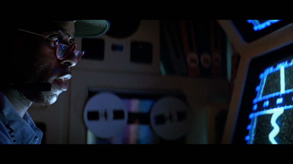 Autrement dit, dans À la poursuite d’Octobre Rouge comme ailleurs chez McTiernan, le langage est ce qui caractérise l’homme – d’une part – et ce qui nous permet de pénétrer dans sa psyché – d’autre part – dans le but de comprendre ses motivations profondes. Les mots comptent plus que les batailles, les dialogues plus que les scènes d’action ; au demeurant, celles-ci se limitent à quelques chorégraphies sous-marines relativement brèves, dans un film où le metteur en scène jongle plus volontiers avec la tension induite par le rythme du montage, qu’avec des artifices pyrotechniques superflus. Ce que nous dit McTiernan, sans cesse, c’est qu’il faut écouter. La leçon est magistralement donnée par Jones, le radio du sous-marin américain Dallas, en chasse de l’Octobre Rouge, qui seul est capable de distinguer parmi les bruits de fond de l’océan ces sonorités artificielles qui révèlent la présence quasi-mutique de l’adversaire – face à tous ses contempteurs qui n’écoutent qu’en surface, si l’on peut dire.