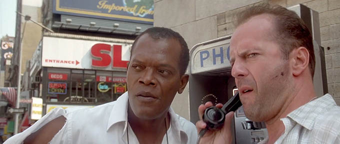 On accorde beaucoup d’importance à la mise en scène millimétrée du cinéaste,à ses plans au cordeau, à l’agilité féline de ses mouvements de caméra et à la photogénie travaillée de ses protagonistes – qui mieux que lui a su en effet transcender, iconiser des acteurs qui, à la lumière de ses choix esthétiques et de caractérisation, ressortaient du cadre incroyablement magnifiés, grandis dans leur stature intradiégétique ? On s’attarde par contre moins souvent sur les langues étrangères qu’adoptent, par stratégie d’attaque, de repli ou de camouflage (on y reviendra), ses personnages principaux : il n’y a qu’à voir comment les « terroristes » du premier et du troisième Die Hard échangent entre eux en allemand quand leurs plans commencent à être sérieusement compromis par le « grain de sable » John McClane. Au-delà du duel entre le cowboy prolétaire issu de la middle-class et les bandits européens aux allures de dandys cruels (tous emmenés, ici par Alan Rickman, là par Jeremy Irons), c’est bien l’idée d’un retour à la langue originale, presque primale (d’ailleurs cris et vociférations dominent) dès que se fait ressentir l’urgence des situations – où se trouve aussi sollicitée l’adrénaline pure – qu’illustrent les effets linguistiques de Die Hard 1 et 3. Fait notable, les langues étrangères ne sont jamais sous-titrées chez McTiernan : effet d’immersion dans l’action, perdition sensorielle, perception parcellaire du discours et des enjeux, surtout dans de grands moments d’hostilité ou de tension. L’insertion dans le récit d’autres langues que l’anglais (c’est la raison pour laquelle ses films sont à voir en version originale) peut même confiner au brouillage narratif , voire au non-sens, comme le russe (déjà exploité dans À la poursuite d’Octobre rouge) dans le remake de Rollerball : à l’image de cette piste de course en forme de signe de l’infini, le verbiage du magnat joué par Jean Reno n’est plus qu’une interlocution en roue libre où se mélangent vocables, rires sarcastiques et hoquets de contentement d’un show business corrompu, « médiocrisé » jusqu’à la moelle.