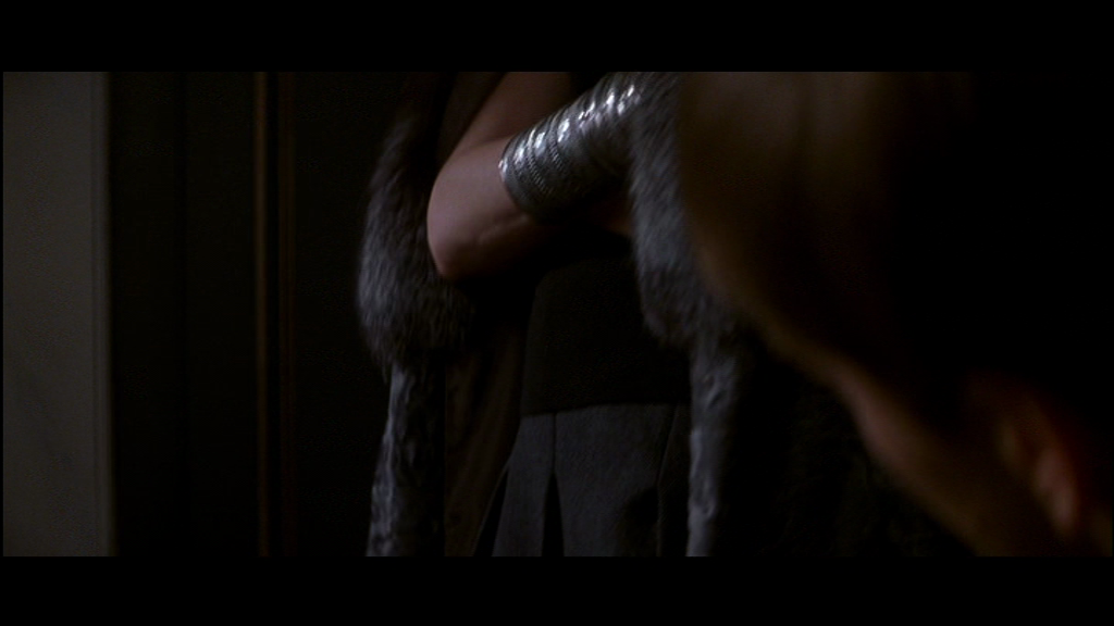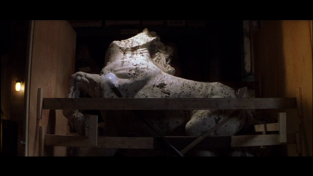Quant à Catherine Banning, son arrivée dans le récit advient lorsque les flics déboulent dans le musée après le vol d’une toile de Monet. Le jeu des éclairages, des lens flare et la découverte de sa présence par une caméra remontant de son pied à son visage magnifient son allure, sa posture. Véritable Aphrodite faisant chavirer les coeurs.