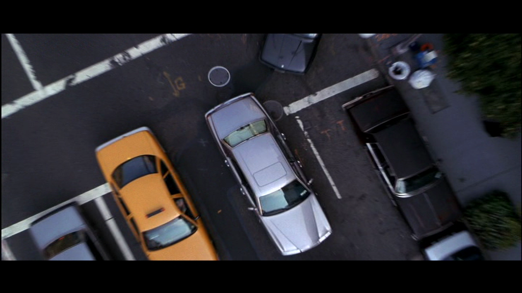 Ainsi, on retrouve disséminées quelques images éparses venant en contre-champ du héros qui vont former un étonnant contraste, soulignant le fait qu’il est étranger au monde qu’il s’en va arpenter et dont il a presque la sensation de vivre un rêve éveillé. Le plan où arrivé au milieu de la fête de noël organisée au trentième étage de la tour Nakatomi, il observe une scène presque irréelle montrant trois personnes discutant au milieu de végétation et derrière un voile d’eau d’une fontaine au premier plan. Le tout dans la lumière tamisée du couchant renforçant la sensation de détachement.