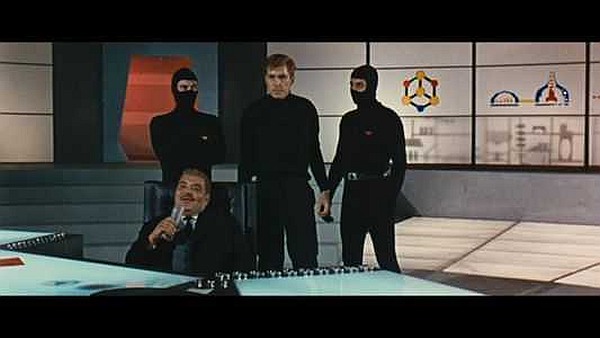 Opération Goldman démarre immédiatement sur les canons en vigueur : un agent secret humoriste et dragueur, quelques jolies filles et un méchant super méchant caché dans une base secrète quelque part sous la mer. C’est kitsch, très kitsch même, et l’on pourrait se croire dans un Austin Powers si ce n’était que le héros, au sourire moins jaunâtre que celui de Mike Myers, ne nous assène pas clins d’œil et plissements de lèvres pour souligner un peu plus le trait. Anthony Eisley, qui joue l’espion, est un bellâtre pas franchement folichon mais le voir jouer avec son chéquier comme d’autres, à commencer par James Bond, sortent le Walther PPK montre combien le film de Margheriti garde en tête la parodie.