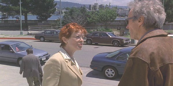 Tout au long du film, c’est Eastwood qui commet de ‘true crimes« , qui est par tous « jugé coupable« . Il fait tout ce qu’il ne faut pas, comme allumer une cigarette au bureau « après le sermon anti-tabac » de son boss. « J’ai raté ça » dit-il. Everett est un mauvais mari, un mauvais père – et sa fille dans le film est sa fille dans la vie -, alors que Beechum est tout le contraire, bon mari et bon père. Tout le monde regarde Everett de travers. « Vous êtes une vieille canaille incurable », l’assure le gouverneur, Anthony Zerbe. « On vous l’a déjà dit ? » « Seulement mes proches ! » répond Everett. Jusqu’à la district attorney, jouée par l’ex-compagne du cinéaste, Frances Fisher, qui lui reproche son alcoolisme. D’ailleurs, une phrase dit bien que le personnage d’Everett est directement concerné par cette histoire de culpabilité : « Je ne sais pas qui tu veux sauver, Beechum ou toi ? » Un peu plus tard, Everett avoue à l’un de ses collègues (Tom McGowan) : « Ma culpabilité ne fait aucun doute. »