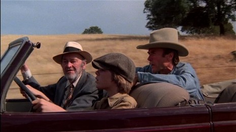 Mais alors, si tous ces personnages, qu’il les incarne ou confie leurs rôles à d’autres, semblent aussi proches de lui, il est finalement eastwoodien, le Clint ? Plusieurs caractéristiques de ses films le décrivent mieux que de longs discours. Ainsi s’aperçoit-on qu’il aime dépeindre l’Amérique rurale, celle de la Grande Dépression, celle qui passe par la route de Madison ou qui finit quelque part sur une voie sans issue du Texas, comme dans Un monde parfait. Pourtant, notre homme est né à San Francisco et son personnage le plus connu reste Harry Callaghan, inspecteur urbain s’il en est. De ci de là et cahin-caha, comme dirait la chanson, il livre quelques indications sur les types qu’il incarne et que l’on peut (ou prou) porter à son crédit. Est-il vraiment ce vieux grincheux réac, celui du Maître de guerre et de Gran Torino, celui qui, raide comme un piquet, fait la grimace en voyant le nombril découvert de sa petite-fille ? On mettra plutôt cela au profit de l’humour dont il fait preuve chaque fois qu’il s’agit de lui. En revanche, ce qu’il dit plusieurs fois à propos de la religion semble être proche de lui. « J’avoue ne jamais avoir apprécié l’église » cloue-t-il le bec au jeune curé (Christopher Carley) de Gran Torino qui veut le consoler de son veuvage. Il décline ce personnage de prêtre dans Jugé coupable. Là, c’était Michael McKean qui incarnait ce curé stupide et infatué de son importance dans le couloir de la mort de San Quentin, un « chie-dans-la-colle » ainsi que le décrivait Beechum, le condamné à mort. Beechum est pourtant croyant (luthérien et donc pas catholique) et quand il parle à Everett de sa foi, celui-ci lui rétorque qu’il n’en a rien à foutre de Jésus-Christ. Eastwood ne condamne pas la foi mais la religion qui aveugle les hommes. De même émet-il des doutes sur les Témoins de Jéhovah, tels qu’ils sont montrés dans Un monde parfait.
