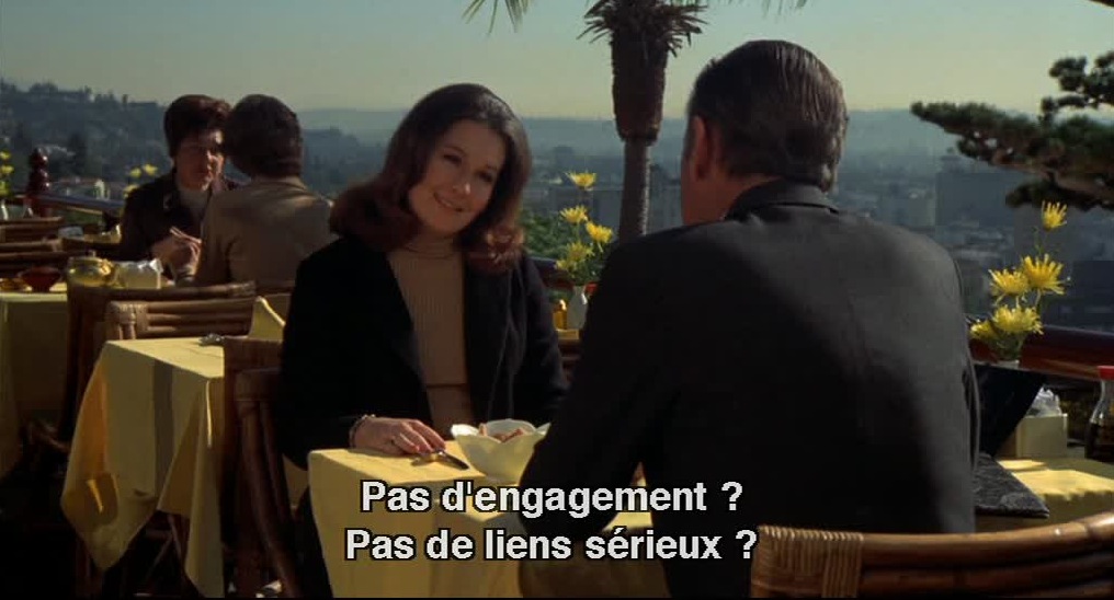 Breezy est superbement dialogué par Jo Heims. Notre oreille est constamment sollicitée. Les échanges entre hommes valent leur pesant de cacahouètes. Le film regorge de petites astuces : Breezy nous apprend qu’elle vient d’un bled nomme Intercourse (en français : rapport sexuel) et pour venir à Los Angeles, elle a dû passer par la ville de Faithful (la fidélité). Comme cocktail, elle commande un Shirley Temple, actrice remarquée très jeune. Quand à Franck, il fait allusion à une reconversion à la Howard Hugues.