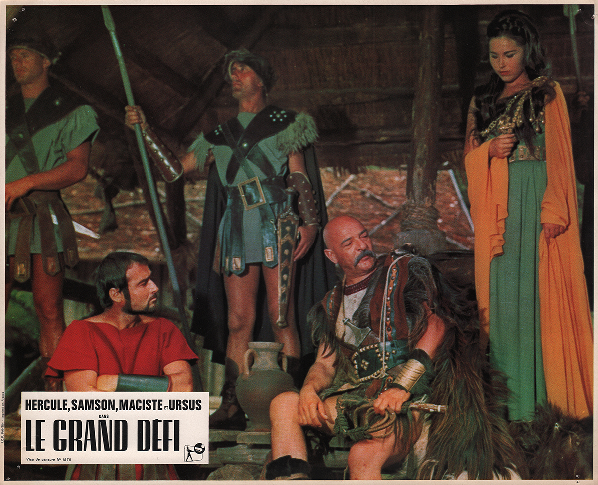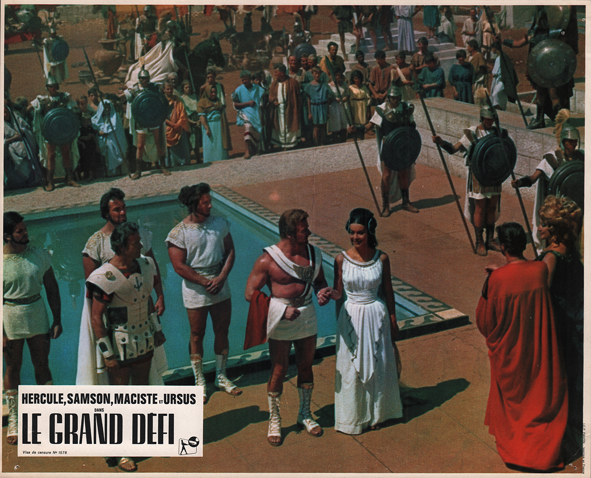 Pour bien montrer qu’une page est en train de se tourner, Le grand défi convoque tous les héros des péplums : Hercule, Maciste, Ursus et Samson. De quoi confondre les confins de la Lydie, où le récit se déroule, avec la Muscle Beach de Venice, à Los Angeles. Le but du jeu va consister à se faire cogner les uns sur les autres tous ces grands costauds pour savoir lequel mérite le titre de l’homme le plus fort du monde. Hercule, qui ne doute de rien, mise sur sa moitié de divinité pour obtenir les lauriers et la main de la princesse de Lydie, la jolie Omphale (Elsa Montes).