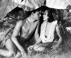 La séquence de la danse de Dolores del Rio est également restée dans la légende. Chorégraphiée par Busby Berkeley – bien qu’il ne soit pas crédité -, elle est, elle aussi, très sensuelle. Dolores est vêtue d’un pagne et d’un seul collier de fleurs – certes, bien accroché à ses seins mais malgré tout d’un grand effet. Nous ne sommes plus dans le Tabu de Murnau et Flaherty, sorti pourtant l’année précédente, où les Tahitiennes dansaient seins nus. Ni dans Legong (1935) du marquis de La Falaise, dans lequel les Balinaises se baladent torse nu pendant tout le film ou presque. Mais ces deux films appartiennent au genre que l’on désigne par travelogue, entre récits de voyages et documentaires. Ici, dans L’oiseau de paradis, il ne faut pas rêver ! Nous sommes dans une vraie production hollywoodienne. L’érotisme est, quoi qu’il en soit, bien présent et le sera encore un tout petit peu – mais vraiment un tout petit peu – dans Mutiny on Bounty (1935), lorsque deux Tahitiennes, filmées de dos, vont se baigner nues, laissant apparaître quelques rondeurs sous les bras. Puis plus rien ! Ainsi, dans le remake de L’oiseau de paradis tourné en 1951 par Delmer Daves, Debra Paget reste très habillée si on la compare à Dolores del Rio. Les filles des mers du sud vont être condamnées par Hollywood, pendant des décennies, à porter des soutien-gorges, puis à nouveau des fleurs dans la version 1962 du Bounty avec Marlon Brando, jusqu’à celle de Roger Donaldson, en 1984, où elles retrouveront tout leur naturel.