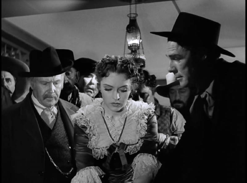 Une fois de plus, c’est dans les marges que Dwan se retrouve le plus à l’aise. Doc et Wyatt ne sont pas encore entrés dans la légende du cinéma : il faudra attendre pour cela la version 1946 d’OK Corral, majestueusement filmée par John Ford (My Darling Clementine/La poursuite infernale) pour que le mythe prenne enfin toute son épaisseur et une dimension qui lui collera comme une seconde peau. Frontier Marshal est la version édulcorée des deux aventuriers de Tombstone. Dwan met d’ailleurs, au début de son récit, beaucoup d’humour. Ainsi quand, accoudés au comptoir d’un bar, Doc et Wyatt mesurent la longueur de leurs canons respectifs. Et oui ! Que les demoiselles excusent ici la trivialité du propos, mais un tel concours de bites ne se retrouve guère que dans l’ultérieur Red River (1948, La rivière rouge). Occasion pour les exégètes de Hawks de se gausser de la prétendue homosexualité de ses cowboys (joués par Montgomery Clift et John Ireland) qui comparent leurs armes pour savoir lequel a la plus longue. Qu’on se le dise : l’idée ne vient pas de Hawks ni de ses scénaristes Borden Chase et Charles Schnee. Elle a tout bonnement été reprise du Frontier Marshal d’Allan Dwan.
