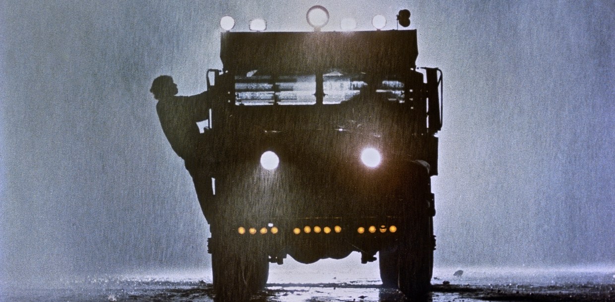 L’histoire, on la connait, les anecdotes d’un tournage tendu aussi. Ce qu’il faut savoir, c’est qu’il s’agit là d’une histoire d’hommes. D’hommes vidés, au bout du rouleau, exilés dans un cloaque exotique, survivants misérables pas si éloignés de bagnards libérés mais relégués sur un territoire aussi beau qu’hostile. Quand ils se portent volontaires pour l’explosive mission de transport, c’est, d’abord, dans l’espoir d’une porte de sortie vers un monde plus riche, plus blanc, plus en rapport avec leur background. Mais il s’agit tout autant, hommes que nous sommes, de relever un défi, d’être en mouvement, de savoir si… Tout pour ne pas pourrir sur pieds, zombies blafards et peureux. Film noir, film d’aventures, film de durs-à-cuire, Sorcerer est peut-être surtout un cauchemar éveillé, une vision morbide de la finitude, une réalité hallucinée renvoyant presque idéalement à l’idée de réalité floue voulue par Georges Arnaud, qui commençait son roman Le salaire de la peur par une sorte d’avertissement s’achevant par quelques mots d’une fascinante étrangeté. A peu de choses près, il écrivait : « Le Guatemala n’existe pas. Je le sais, j’y ai vécu. »