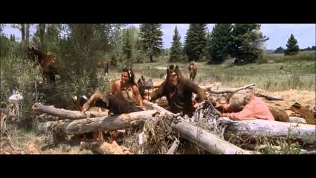 Pris entre deux feux, nos deux trappeurs ont fort à faire. À signaler également, surtout dans le premier tiers du métrage, un ton décalé mais un scénario historiquement documenté, à l’image de ce grand village provisoire mélangeant camp Crow, comptoirs de commerce, rendez-vous de trappeurs, tentes-tavernes, bordels ambulants, mon tout dans une ambiance de défoulement alcoolisé où tous se mélangent sans s’entre-tuer même si se bagarrant occasionnellement dans l’hilarité générale. Une séquence à la fois curieuse et forte, en fait comme l’ensemble de ce film scénarisé par un jeunot de 25 ans, Fraser Heston, le fils à son papa.