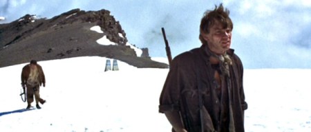 Dans ce paysage gagné par l’abstraction, les seuls dialogues échangés ne le sont qu’entre nos deux figures. Les autres personnages se contentent d’être des figurants, aperçus de loin ou une femme silencieuse qui se met à hurler. Losey s’amuse, outre les paysages magnifiques déjà cités, à n’utiliser la belle photo d’Henri Alekan que pour des dialogues entre Shaw et McDowell. Ces séquences parfois longues sont alors bousculées par des irruptions de violence, l’hélico qui s’approche ou les champs en flammes où doivent se réfugier nos deux compères. Abstraction encore que cette étrange musique de Richard Rodney Bennett, qui signa plusieurs partitions pour Losey, et qui ne devient véritablement mélodieuse qu’à la toute fin. Elle fait un peu penser à celle, tout autant avant-gardiste, que Jerry Goldsmith a composée pour La planète des singes deux ans auparavant. Nous sommes, en 1970, à la limite de l’expérimental.
