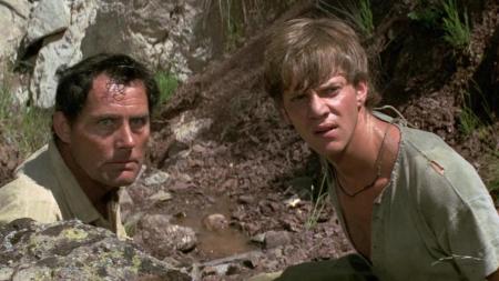 Le scénario, on l’a dit, est dû à Robert Shaw. Spécialisé dans les rôles de méchants — entre autres, le tueur blond de Bons baisers de Russie — l’acteur est également un auteur reconnu. Ses véritables titres de gloire à l’écran, c’est avec L’arnaque (1973) et Les dents de la mer (1975) qu’il les obtient. Face à lui, le jeune Malcolm McDowell vient d’exploser à l’écran dans If de Lindsay Anderson, sur une révolte scolaire. La célébrité planétaire viendra l’année suivante grâce à Orange mécanique. Dans le roman dont Shaw s’inspire et qui fut publié en 1968, Figures in a Landscape, l’écrivain Barry England décrit ses deux héros comme deux soldats évadés d’un camp de prisonniers, dans une république bananière. La force de Shaw est d’avoir épuré complètement le récit, gommant les détails et le transformant en un sujet beaucoup plus universel et allégorique d’une humanité perdue et en danger.