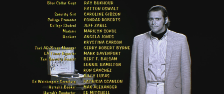 Pour nous raconter la vie du comédien, Forman délaisse le biopic classique au profit d’une forme plus proche que ce que faisait Andy Kaufman dans la réalité et ce, dès le démarrage du film et son générique. Générique de fin qui défile sur le côté dès le début, donc. Avec un Jim Carrey facétieux qui supervise la musique à l’aide d’un électrophone.