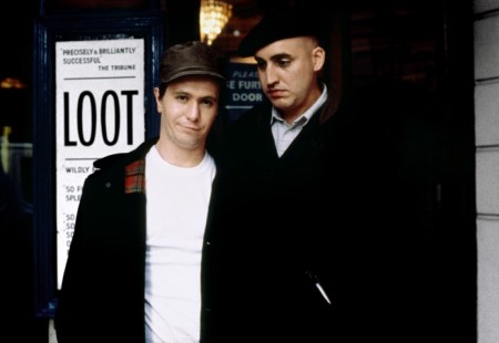 Oldman et Molina sont les deux atouts majeurs du film. Complètement à l’aise en jeune prolo anglais, le premier avait déjà joué au théâtre une pièce d’Orton (Entertaining Mr Sloane) et s’était fait repérer dans le Sid and Nancy d’Alex Cox, dans lequel il incarnait Sid Vicious. Quant à Molina, future vedette de Spiderman (l’Octopus, c’est lui) et de Frida (où il est le puissant Diego Rivera face à la frêle Salma Hayek/Frida Kahlo), il est tout bonnement exemplaire ici. La tête recouverte de différentes perruques, aussi ridicules les unes que les autres, puis le crâne chauve, le personnage joué par Molina ne cesse de cacher sa personnalité et ses frustrations, d’autant plus fortes qu’Orton joue cruellement avec et manipule son ami. En cela, la séquence où Orton doit rejoindre Paul McCartney pour discuter d’un projet de film en dit long sur le fossé qui se creuse peu à peu entre les deux amants.