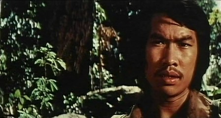 Il est vrai que ce n’est pas tous les jours qu’on a la chance de voir un film indonésien. Celui-ci, réalisé par un certain Ratno Timoer, porte le titre original de Golok setan et est aussi connu sous l’autre titre de Koral le justicier, alors que le justicier en question, incarné par Barry Prima qu’il ne faut surtout pas confondre avec son homologue américain Barry Primus, se nomme Mandala. Faut-il voir dans ce titre de seconde zone un vague jeu de mot et une encore plus vague allusion à une certaine lessive lavant plus blanc et éliminant les taches en douceur ? Tout est possible ! Bref, pour résumer l’action du Justicier: une méchante reine des crocodiles, l’affriolante Gudi Sintara, envoie un tout aussi méchant homme de main, Banyunjaga (Advent Bangun), kidnapper au cours d’une noce le jeune marié, malgré la résistance héroïque de sa future épouse (Enny Cristina) et d’un mec qui passait par là par hasard, Mandala (Barry Prima, donc).