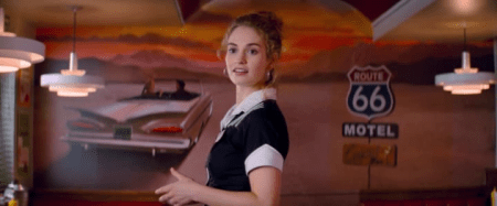 Tout fini par s’imbriquer magnifiquement au cours de cette scène géniale où il « entend » enfin la voix de sa mère dans la voiture conduite par sa fiancée. Mais leur échappée sera de courte durée puisqu’ils sont arrêtés peu après dans leur élan par la police. Néanmoins, Debora continue à incarner le rêve de liberté de Baby désormais incarcéré pour cinq années. Après avoir reçu une enveloppe contenant une lettre et des cartes postales de sa dulcinée, il s’imagine à sa sortie allant à sa rencontre. Alors qu’il ferme les yeux devant la glace pour visualiser ce moment, on remarque que la carte postale qui l’aide à se concentrer représente en miniature le décor du Diner où elle travaillait.