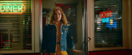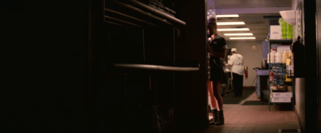 De plus, c’est au cours de cette scène qu’il va croiser la route de Debora qui n’apparaît ici que comme une silhouette intrigante car elle aussi se déplace nonchalamment avec un casque audio vissé sur les oreilles. Le mouvement de caméra et le décor la désigneront d’emblée comme un évident intérêt amoureux.