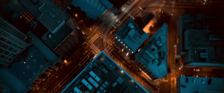 Wright enchaîne même plus tard avec un plan aérien où le béton des bâtiments prend le pas sur les voies de circulation, figurant un peu plus son cloisonnement.