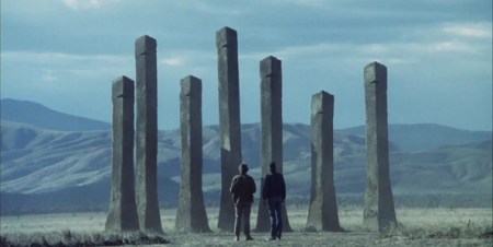 La force de Phase IV réside dans ses images, ces images en gros plans et documentaires d’êtres minuscules que l’on voit dévorer plus gros qu’eux ou se relayer pour transporter jusqu’à leur reine ce qui va devenir leur future arme contre nous. Toutes ces séquences sont impressionnantes et elles avaient fortement perturbé ceux qui les avaient découvertes à la sortie du film. Bass ajoute à cela des mystères très à la mode à cette époque. On se souvient du monolithe de 2001. On sait aussi l’attrait qu’avait pour les Occidentaux les mystérieuses statues de l’île de Pâques. Pierre Kast leur avait même consacré un film en 1972 (Les soleils de l’île de Pâques). Dans Phase IV, autour de la base humaine, les fourmis construisent des monolithes plus proches des termitières que des fourmilières, monolithes qui évidemment renvoient au mystère même de l’humanité, illustré autant par Kubrick que par cette petite île chilienne du Pacifique. Citons encore cette image buñuélienne semblant tout droit sortie d’une version horrifique du Chien andalou.