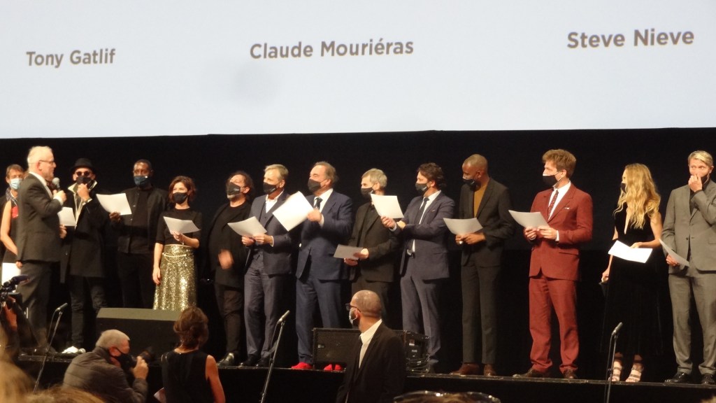 Ce 10 octobre, devant une salle réduite, masquée, distanciée mais toujours aussi enthousiaste, sont montés sur la scène pour la séance d’ouverture du festival, outre Thierry Frémaux — et en l’absence de Bertrand Tavernier, président de l’Institut Lumière et orfèvre dans les présentations cinéphiliques — : Viggo Mortensen, Oliver Stone, Thomas Vinterberg, Mads Mikkelsen, Abd al Malik, Lætitia Dosch, Emmanuelle Devos, Alice Rohrwacher, JR, Vincent Lindon, Ladj Ly, Lucien Jean-Baptiste, Rebecca Zlotowski, Lyna Khoudri, Irène Jacob, Éric Guirado, Claude Mouriéras, Jean-Xavier de Lestrade, Jean-Pierre Kalfon, Pierre Lescure, Lucas Belvaux, Laurent Gerra, Jacques Audiard et son neveu Stéphane, Salim Kechiouche et le pianiste Steve Nieve, accompagnateur de Bowie, Elvis Costello et Morrissey, qui rendit un bel hommage à Ennio Morricone.