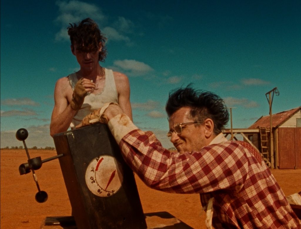 Vous avez là Betty (Rhys Davis, créditée Melissa Davis), aux coiffures et maquillages mythologiques, qui passe son temps à jouer dehors, face au vide, d’un curieux instrument qui ressemble à l’erhu chinois mais en beaucoup plus grand. Son frère Félix (Michael Lake), cloué sur son fauteuil, ne cesse de rêver en attendant la mort, de sublimer un envol grâce aux engins qu’il invente. Lui qui ne pourra plus être un merveilleux fou volant passe son temps à créer de drôles de machines. Il y a enfin cet étranger, Smith (Norman Boyd), qui arrive à pied d’un ailleurs improbable et veut en atteindre un autre en franchissant des montagnes infranchissables.