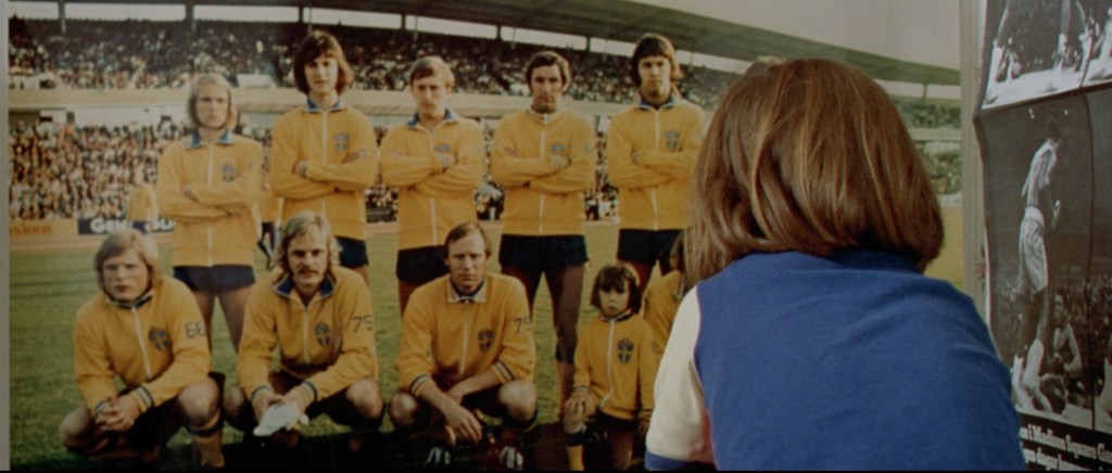 On aurait tort de penser qu’en matière de célébrité, le Suédois ne s’intéresse qu’au petit Johan. Le film s’ouvre sur des manchettes de journaux vantant les mérites footballistiques d’un certain Macken. Lequel Macken, se promenant dans les rues de Stockholm, est l’objet de toutes les attentions. En se rendant chez sa chérie qui vit dans la banlieue, il traverse un terrain sur lequel s’amusent des gamins. Il tente d’en dribbler un et se fait largement posséder. Perturbé, Macken perd tout : la reconnaissance des autres et ses facultés à taper dans un ballon. Il en faut finalement peu, nous raconte Widerberg, pour dégringoler du haut du podium à la médiocrité. Ce passage à vide est résumée par une phrase tout à fait dans l’air de cette époque et typique de son machisme : « Tu ne pourrais, dit l’entraîneur à Macken, même pas jouer dans l’équipe féminine. »