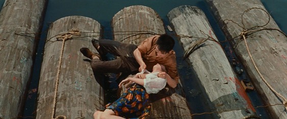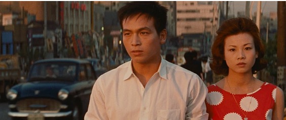C’est là où Oshima, imprégné de culture américaine comme le sera aussi Seijun Suzuki deux-trois ans plus tard, baigne son film de musique jazz, utilise un montage rapide et rythmé et des couleurs vives. Dès la première séquence, on remarque celles des voitures, chatoyantes. Puis celles des vêtements que portent les deux protagonistes : la chemise verte de Kiyoshi, la robe rouge de Makoto. Ce sont aussi ces plans qui affichent leur modernité et qu’on pourrait tout aussi bien attribuer à Godard, comme lorsque les deux jeunes gens marchent sur des rondins, au bord de la mer. Leur ligne de chance ? Quelle importance ! Ou lorsque Makoto téléphone : Oshima cadre au premier plan un téléphone bleu et la bouche de la jeune fille. Et la beauté du plan répond à sa tristesse : car c’est au bip que Makoto s’adresse, son amant ayant été rejoindre la femme âgée dont il est le gigolo.