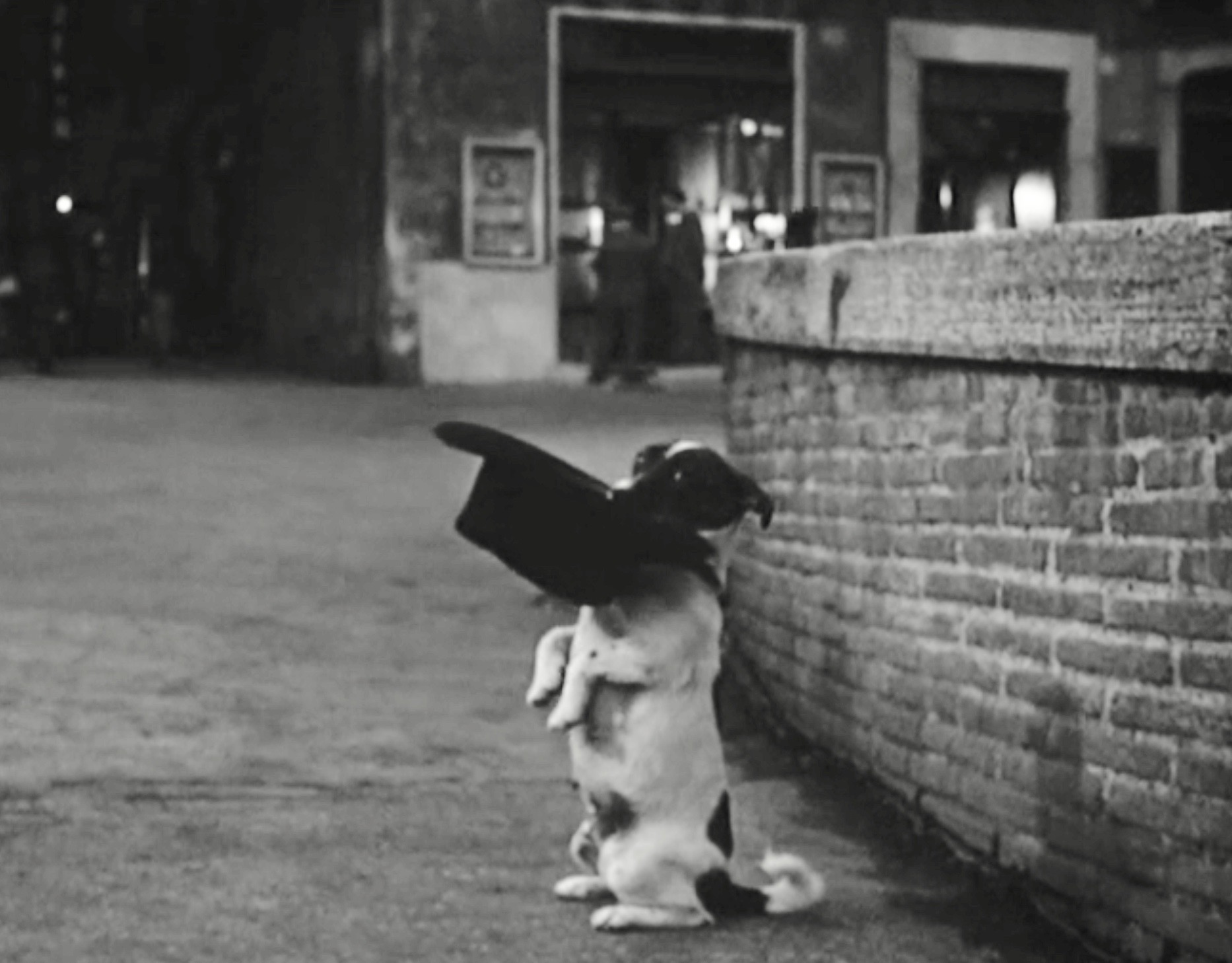 Il y a, c’est indéniable, un côté Chaplin chez De Sica. L’Italien l’admire et, comme lui, sait sublimer ce mélodrame poignant que dosent quelques gags visuels (et souvent tristes), dignes de Charlot. Tel ce réveil qu’Umberto ne sait stopper et qu’il cache sous ses couvertures. Ou, poignante, sa tentative de faire la manche. Un homme le dépasse, s’arrête, revient vers lui… Mais, honteux, Umberto a retourné sa main et fait mine de voir s’il pleut. Regardons encore cet attendrissant petit chien, fidèle compagnon du vieillard, qui s’assoit pour tendre un chapeau. Non, Chaplin n’est pas loin et l’on pense évidemment à Une vie de chien.