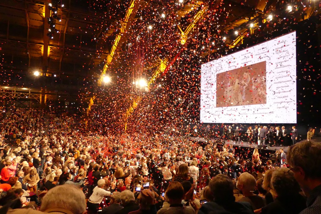Jusqu’à dimanche prochain, Lyon est devenue, avec sa banlieue, capitale du cinéma et c’est en compagnie de nombreuses personnalités que Thierry Frémaux a pu annoncer, devant les 5000 spectateurs de la Halle Tony-Garnier, l’ouverture tant attendue. Quelques noms ? D’accord, mais la liste risque d’être longue. Citons Maggie Gyllenhaal, Valeria Golino, Rossy de Palma, Anne Le Ny, Danièle Thompson, Claudia von Alemann, Dominique Blanc, Géraldine Pailhas, Aïssa Maïga, Delphine Gleize, Marie-Castille Mention-Schaar, Doria Tillier, Léa Drucker, Mimie Mathy, Charlotte Kady, Mélanie Thierry, Costa-Gavras, Jean-Paul Rappeneau, Paolo Sorrentino, Tony Gatlif, Joachim Trier, Philippe Le Guay, Christian Carrion, Nils Tavernier, Alain Chabat, Benoît Poelvoorde, François Damiens, Édouard Baer, Damien Bonnard, Michel Creton, Bernard Le Coq, Samuel Le Bihan, Lucas Belvaux, Raphaël Personnaz, Christopher Thompson, Jonas Ben Ahmed, Victor et Giacomo Belmondo, les petits-fils de Jean-Paul, Laurent Gerra et d’autres encore, dont les compositeurs Philippe Sarde, Alexandre Desplat et Vincent Delerm.