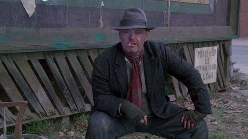 La force du film — et pas celle du destin — tient au manque d’espoir du personnage principal, joué par Jack Nicholson. Rien n’ici n’est revendicatif, social — même si ces aspects de la Grande Dépression américaine ne sont pas balayés. Nicholson s’est clochardisé parce qu’il l’a voulu, ne pouvant supporter un geste commis il y a de cela bien longtemps. Rien ne pourra racheter cela, malgré une tentative que Nicholson semble regretter assez vite.