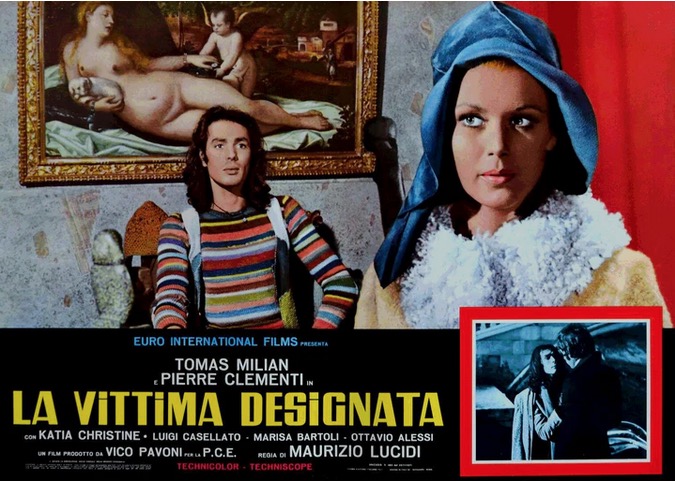 Les critiques français ont parfois fâcheusement tendance à rapidement étiqueter ce qui mérite davantage d’attention. C’est ainsi que le film de Maurizio Lucidi, La vittima designata (La Victime désignée, 1970), est classé comme un giallo, genre codifié s’il en est, alors qu’il est plus sûrement un thriller prenant pour base de départ une thématique empruntée à Patricia Highsmith. Personne n’a oublié l’échange de meurtres entre deux personnes qui ne se connaissent pas dans L’Inconnu du Nord-Express et le traitement qu’en avait fait Alfred Hitchcock. Le « Je tue ta femme et, en échange, tu tues mon père » se change ici en « Je tue ta femme, tu tues mon frère » et le personnage qui propose cela au héros (Tomas Milian), incarné par Pierre Clémenti, est tout aussi trouble, attirant et effrayant, avec une personnalité complexe passionnante à étudier, que ne l’était Robert Walker dans le film de Hitchcock.