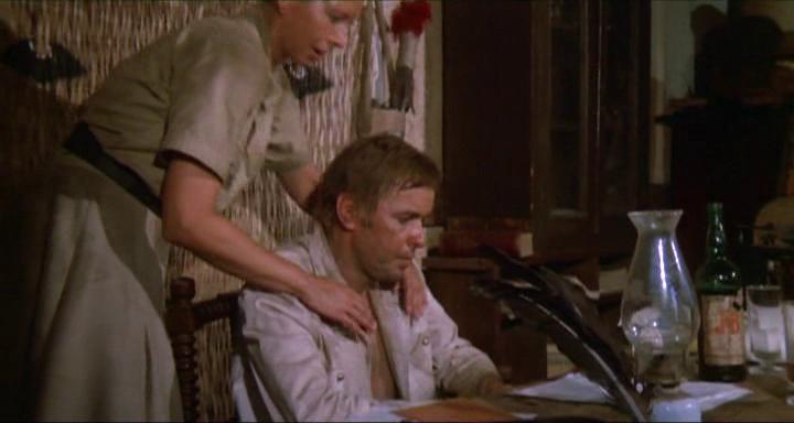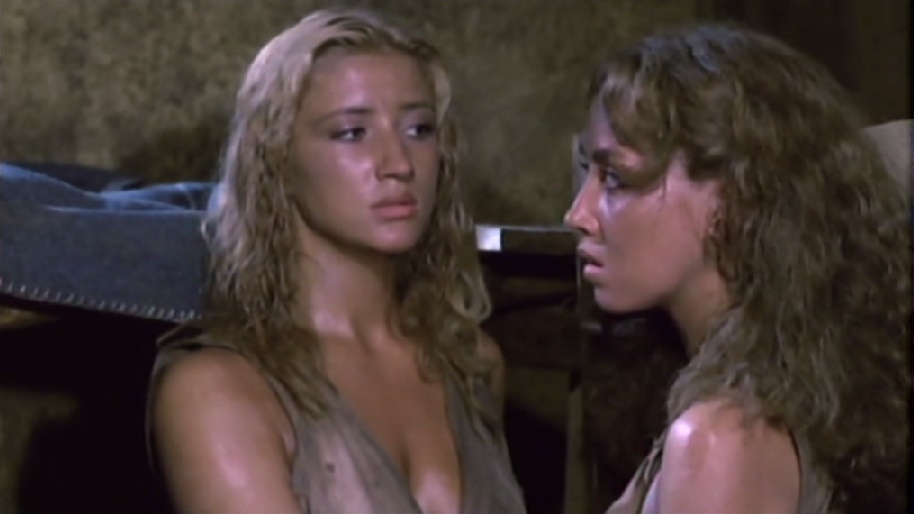 Que proposent les films WIP ? Tout d’abord, de jolies femmes incarcérées, soit dans une vraie prison soit dans un camp exotique à se crever de fatigue à des travaux forcés. Mulargia — dont on avait célébré dans ces mêmes colonnes un film plus ancien, Tropique du cancer — choisit la seconde thématique et, pour bien remplir son cahier des charges, nous fournit son lot de séquences attendues : les douches, les échanges saphiques et la brutalité sadique des gardiens… et ici d’une gardienne (Gota Gobert, connue aussi sous le nom d’Agota Gobertina). Pour satisfaire sa clientèle, Mulargia ajoute plusieurs scènes érotiques entre deux prisonnières ou un gardien et une prisonnière ou, curieusement, celle où Ajita Wilson, l’une des internées, se tortille nue devant la caméra et qui n’a rien à voir avec le moment où cette danse est intégrée. Tous ces instants ne servent bien sûr pas l’intrigue et se révèlent aujourd’hui assez inutiles, l’érotisme des tenues (de simples tuniques sur les corps nus, la plupart du temps largement ouvertes) suffisant amplement. Il faut d’ailleurs remarquer que Les Évadées contient davantage de ces scènes que Les Tortionnaires et que le scénario du second, avec des révolutionnaires menés par Anthony Steffen qui veulent s’emparer du camp et libérer les prisonnières, est beaucoup plus abouti. Le premier film est plutôt, mis à part tous les ingrédients du WIP, une histoire de rédemption. Steffen incarne un médecin alcoolique et désespéré qui, à la toute fin, va se décider à réagir.