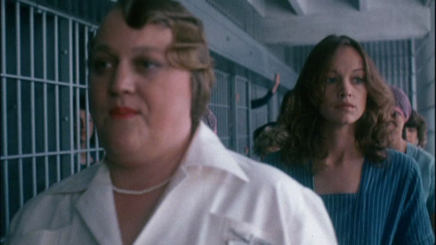 On pourrait penser que sa Lady in Red, qui arrive plus de dix ans après Bonnie and Clyde et le renouveau des films de gangsters des années trente, n’est qu’un film de plus qui décrit des braquages à l’époque de la Grande Dépression. Or, il n’en est rien car John Dillinger, un des personnages du film, n’arrive que très tard dans le récit. Lequel s’appuie plutôt sur Polly, jouée par Pamela Sue Martin, une pauvre fille qui subit toutes les violences inhérentes aux femmes à cette époque : la pauvreté rurale et la rudesse paternelle, les boulots de misère et l’exploitation sexuelle, le syndicalisme mal vu par la société et sa police, le passage par la prison, la prostitution, etc. Chaque épisode est ponctué par l’apparition d’un acteur ou d’une actrice. Ainsi, lorsque Polly passe son temps à coudre pour un salaire de misère, elle subit le harcèlement du chef d’atelier, belle composition du génial Dick Miller, acteur fétiche de Corman, dans un beau rôle de salaud. En prison, Polly aura à se frotter à Nancy Parsons, terrible et odieuse matonne. Enfin, dans le bordel, il lui faudra supporter un mafieux au surnom de Frognose (« Nez de crapaud »), joué par l’impeccable Christopher Lloyd.