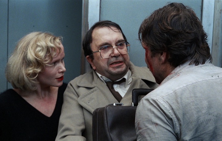 Qui dit groupe humain dit, en principe, microcosme sociétal. Sauf que là, Carl Schenkel ne veut pas submerger le public de morale philosophique, juste lui donner quelques frissons. Aussi nous aurons là une jolie fille (Renée Soutendijk) et son collègue de bureau et ancien amant (Götz George), un punk agressif (Hannes Jaenicke) et un vieux comptable dont on se demande ce qu’il trame (Wolfgang Kieling, qui jouait dans Le Rideau déchiré de Hitchcock l’espion est-allemand que Paul Newman trucidait la tête dans un four).